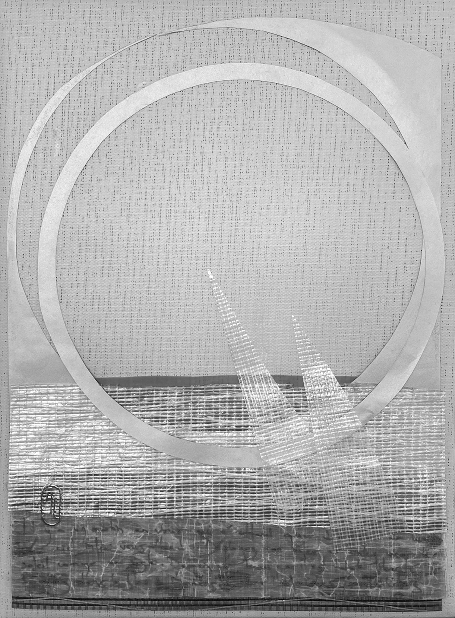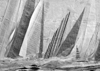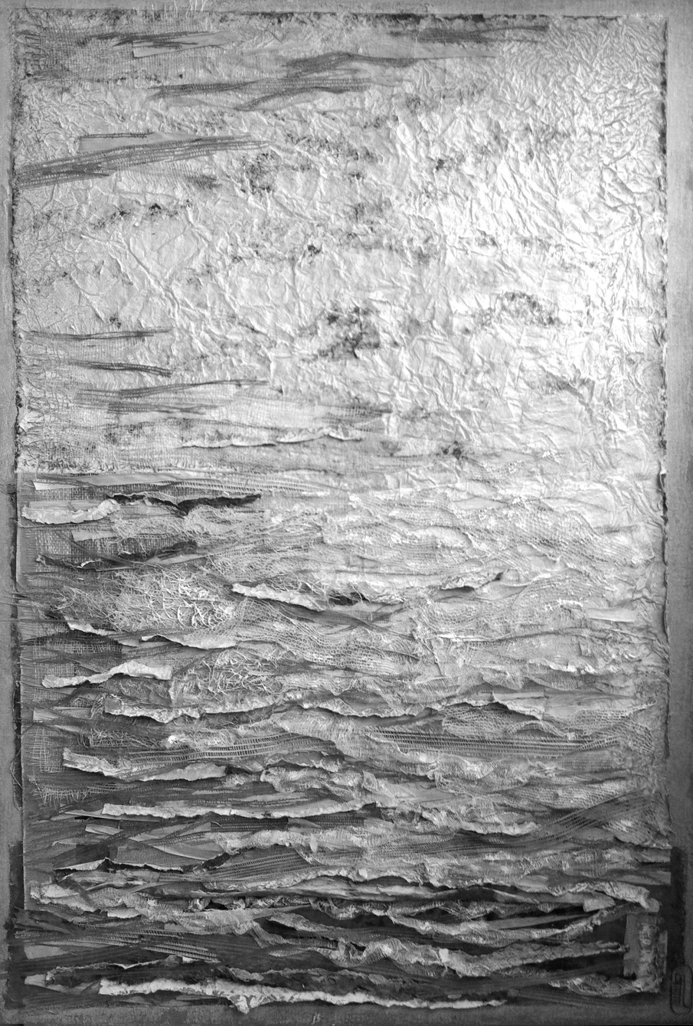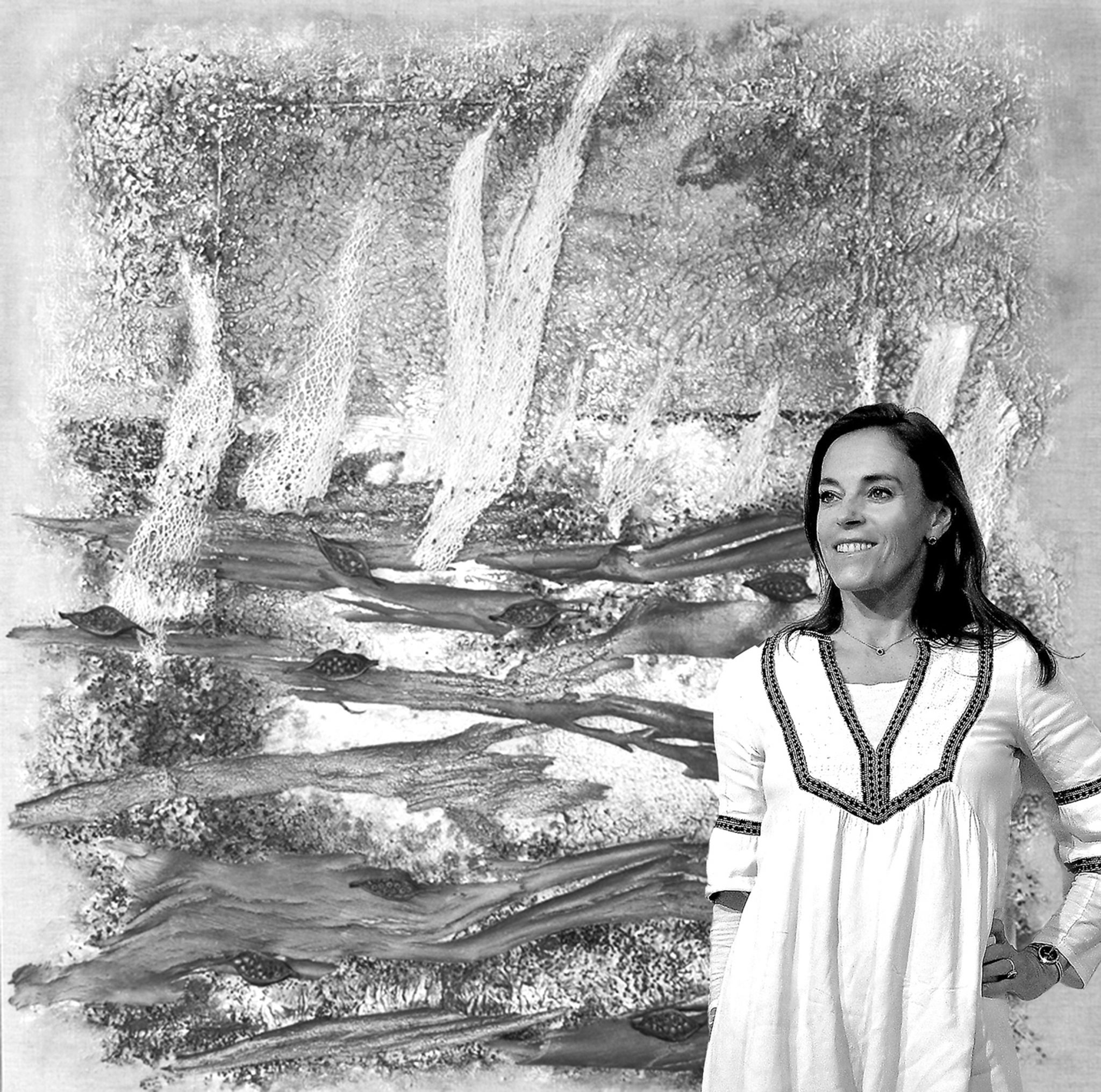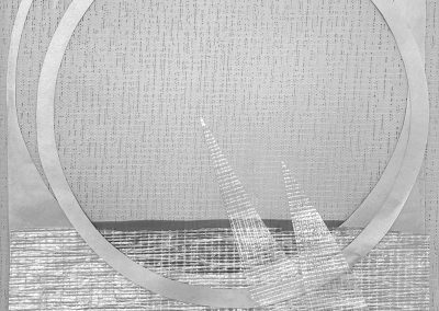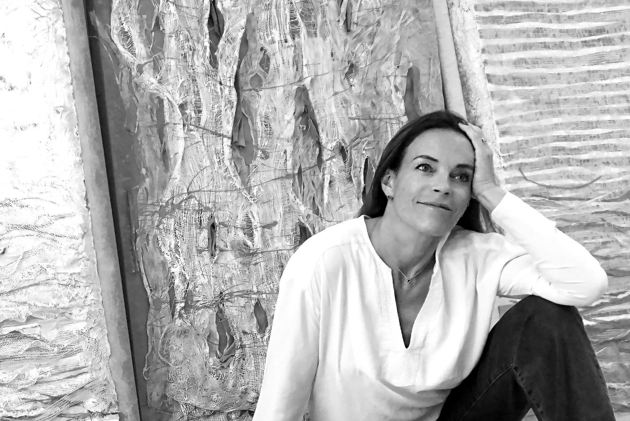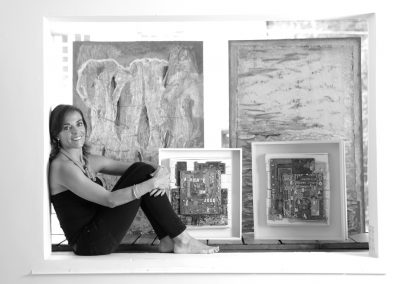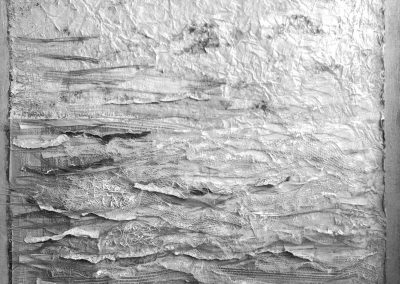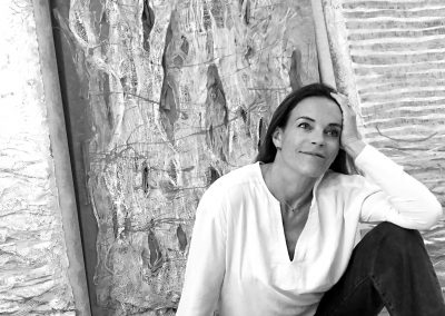 J’ai continué à intégrer dans mes oeuvres la dimension de profondeur, d’espace et de lumière. Mon expression est devenue abstraite pour me centrer davantage sur l’émotion projetée. Je me suis laissée happée par la texture : la sensorialité d’une écorce de bouleau, d’un papier fait main, de fibres de palmier, d’une voile de bateau recyclé, un morceau de plastique poli par le ressac de l’océan…J’écoute la résonance de la matière, puis j’y mets une intention. Mes œuvres sont le fruit de cette tension entre la matière et le mouvement que j’ai voulu créer.