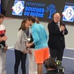 Le gagnant Jo  Wilfried Tsonga.  remporte donc son 14 eme titre de sa carrière et il aura donc gagné  deux tournois consécutifs, quelle santé ! Martine Vassal remet au gagnant le chèque ainsi que la fameuse coupe « le trophée qu’il a déjà soulevé à deux reprises, donc jamais deux sans trois … et le score  6-4, 6-4  en 1h09′ de jeu
