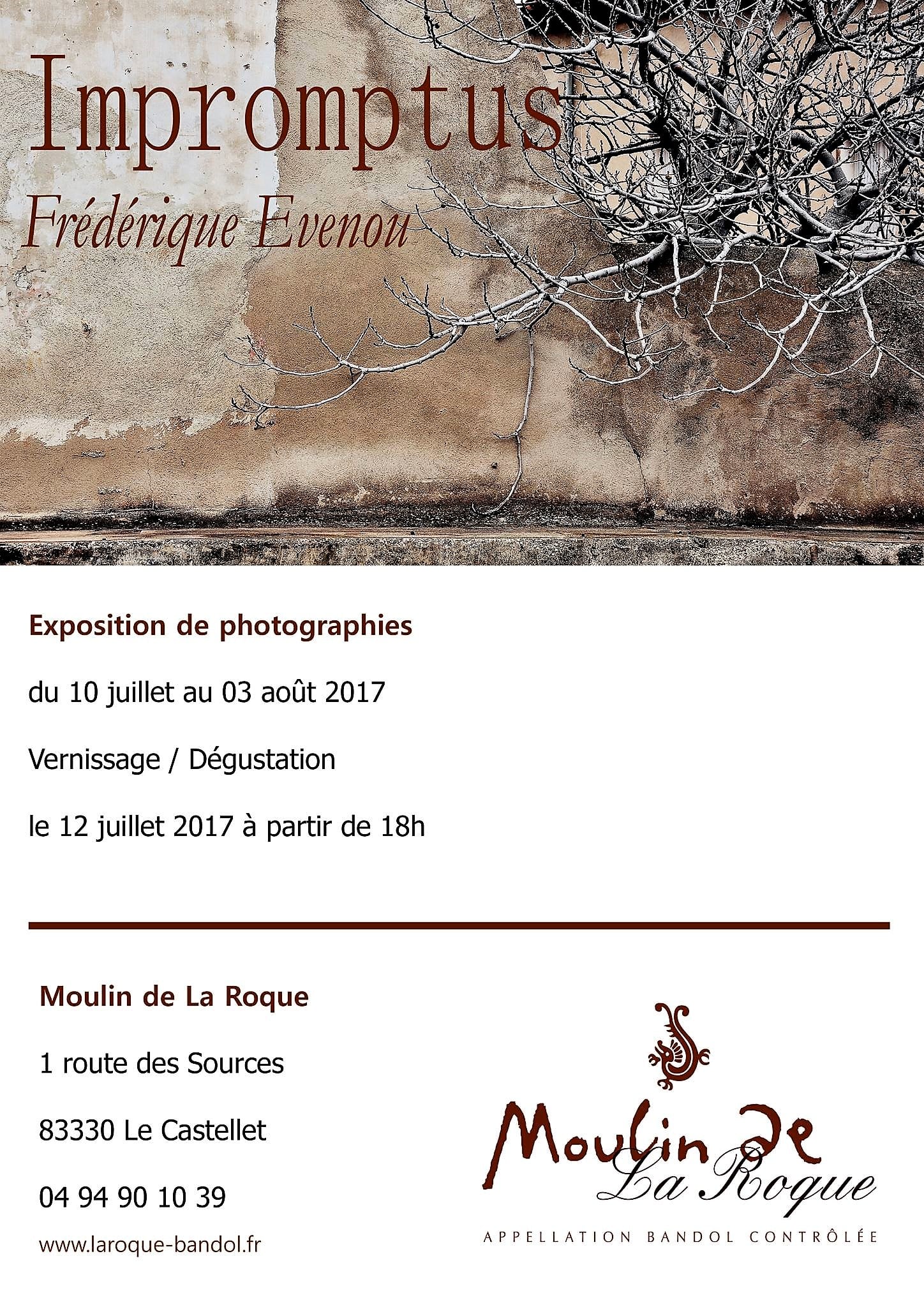L’exposition « Impromptus » offre un échantillon représentatif de ce style que l’on peut qualifier de dépouillé ou de minimaliste. Que ce soit au fil des rues ou en intérieur, l’objectif se contente d’accueillir la richesse de ce qui s’offre au regard par la seule vertu de la lumière, sans opinion préconçue sur ce qui est important et ce qui ne l’est pas. C’est pourquoi, tels des impromptus, les photographies de Frédérique Evenou sont dépourvues d’intention préalable ou de volonté de transmettre un quelconque message : il s’agit plutôt de libérer l’œil des significations et des codes pour le rendre disponible au détail des choses, jusqu’à en faire oublier le nom, processus qui, par delà le minimalisme, conduit parfois aux limites de l’abstraction. Seule importe ici la lumière, matière première de la photographie, qui accentue ou estompe, révèle ou dissimule, et qui, elle-même invisible, rend toute chose visible. Inutile alors de se demander où la photographie a été prise ni quel est le sujet, il suffit de laisser le regard se nourrir des détails et des contrastes de couleurs et de matières, prélevés sur d’improbables supports tels que des portes, des façades ou de banales chaises alignées.