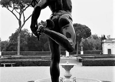 Les fesses de Mercure* brillent sous la bruine, nous sommes à l’Académie de France à Rome, merveille du XVII ème siècle, haut lieu d’art et de culture, la somptueuse Villa Médicis, domine la colline du Pincio, et offre une vue imprenable sur la ville éternelle.