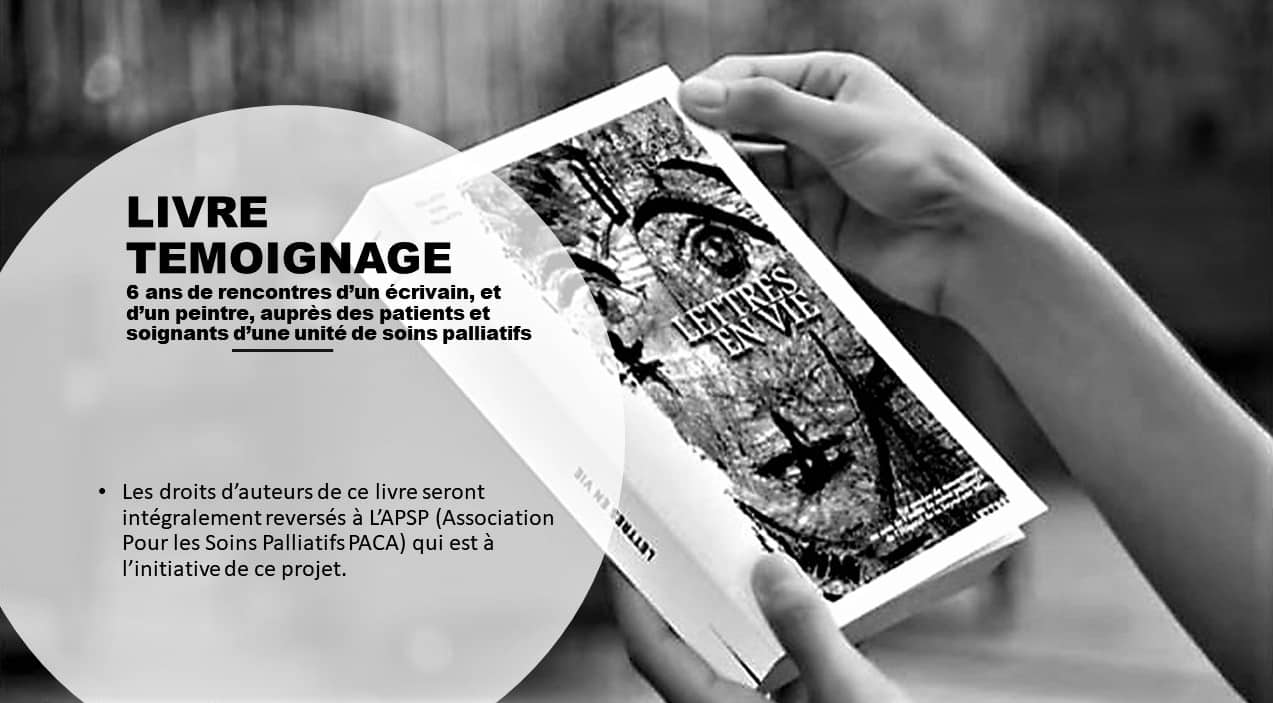Je crois me souvenir que c’est au terme de la 5 eme année de nos interventions aux soins palliatifs que nous est venu cette idée de rassembler ces échanges, ces portraits, ces courriers, afin de coucher dans un texte la force, la tendresse et l’absolue sincérité de tous ces témoignages. Afin de ne rien oublier.