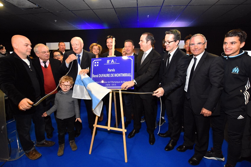 « C’est vrai qu’au début, c’était l’athlétisme qui était en avant, du rugby ensuite et des courses cyclistes même », se souvient Richard Miron. « Avec notre maire, nous faisons en sorte de montrer que notre ville est sportive et rendre hommage aujourd’hui au père-fondateur de l’OM est un moment inoubliable », dira entre autre Yves Moraine maire des 6e et 8e arrondissements. Dans la foulée, Jean-Claude Gaudin maire de Marseille « exulta » avec la verve qu’on lui connaît les convives pour raconter le parcours de cet homme exceptionnel pour la ville. Ayant grandi en Algérie, René Dufaure De Montmirail a étudié à Marseille. Amateur de sport, c’est à l’âge de 21 ans qu’il crée le Football Club de Marseille. Deux ans plus tard, il fonde l’Olympique de Marseille dont il sera le président de 1900 à 1902. « Sans lui, nous n’aurions pas notre OM aujourd’hui et nous devions marquer le coup, nous rappeler qui était cet homme aux grandes valeurs », précisa Jean-Claude Gaudin. Et de poursuivre : « Il fut aussi président régional de l’union des sociétés françaises de sports athlétiques, membres de la fédération des cyclistes de Marseille, de la société nautique et de bien d’autres clubs encore ». Il y a 100 ans le 9 février 1917, René Dufaure De Montmirail s’est éteint à l’âge de 41 ans. « Il est parti trop tôt mais dans sa générosité et sa passion du sport, il n’a pas soupçonné un instant l’impact que cela allait engendré sur notre ville », poursuit le maire de Marseille. Et de conclure : « Notre devoir était d’honorer sa mémoire et il doit être fier là-haut de voir que ses descendants et son arrière petit-fils Valeilles étaient présents ».