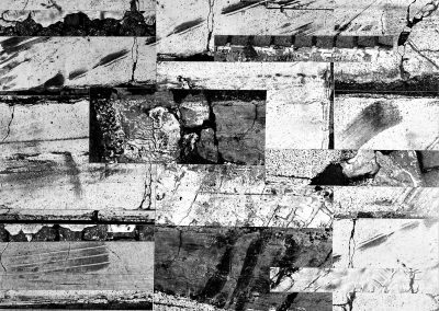 Dans un second temps, de retour à son atelier, vient le moment des étapes procédurales. Extraire les images, choisir les cadrages, les juxtaposer, les triturer, les recomposer en une sorte de collage qui donnera naissance à l’œuvre abstraite et à la poésie ressentie.
